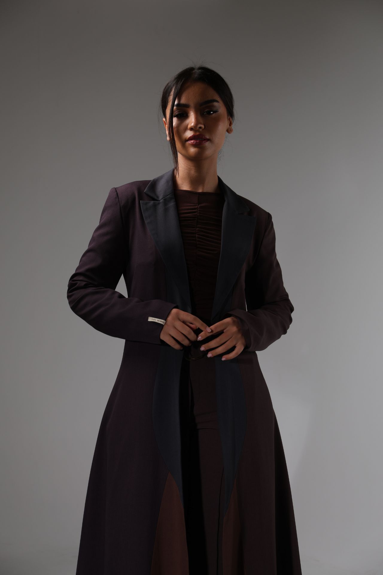 معطف طويل بتصميم ألوان متباينة معطف طويل بتفصيل دقيق مع دمج لوني جريء بالعنابي والأسود ودرجات ترابية. مصمم بقصّة نظيفة وياقات انسيابية أنيقة. قطعة راقية تضيف لمسة عصرية إلى أي إطلالة